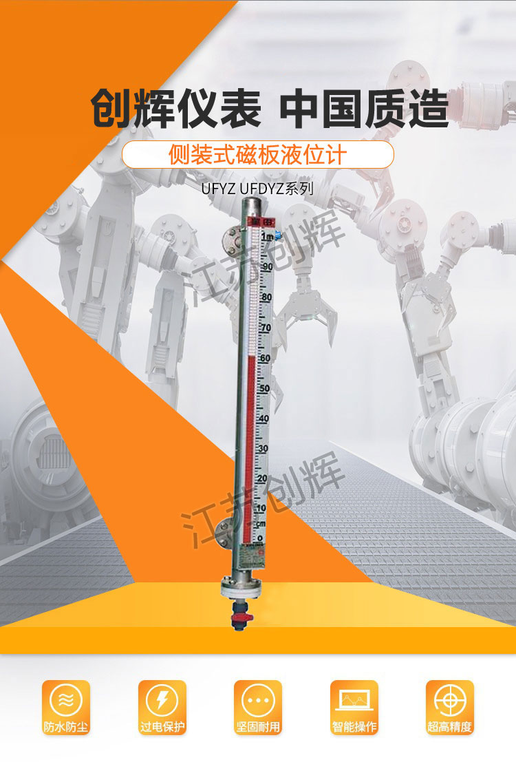 CH-UHZ磁翻板液位計(jì)可用于各種塔、罐、槽、球型容器和鍋爐等設(shè)備的介質(zhì)液位檢測(cè)。磁浮子液位計(jì)又叫磁翻柱液位計(jì)或者磁翻板液位計(jì),是一種能就地顯示或帶遠(yuǎn)傳與控制的液位計(jì)。**用于石油、化工、輕工、電力、核工業(yè)以及食品、醫(yī)療等工業(yè)中,對(duì)各種她、罐、槽、箱等容器中介質(zhì)的液位進(jìn)行指示和控制。它可以做到高密封,防泄漏和適用于高溫、高壓、耐腐蝕的場(chǎng)合。它彌補(bǔ)了玻璃板(管)液位計(jì)指示清晰度差、易破裂等缺陷,且全過(guò)程測(cè)量無(wú)盲區(qū),顯示清晰、測(cè)量范圍大。零部件材料采用1Cr18Ni9Ti、316L、0Cr18Ni9Ti、1Cr18Ni9Ti襯PTFE(聚四氟乙烯)、PVC、PP等材料及進(jìn)口元件,具有***的可靠性和抗腐蝕性能。